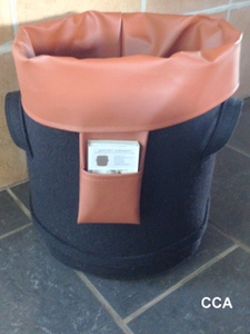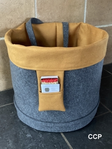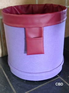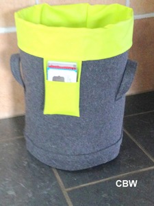 Das Tönnchen ist oben und unten rund. Erhältlich in verschiedenen Farben (sowohl Filz als auch Innenmaterial).